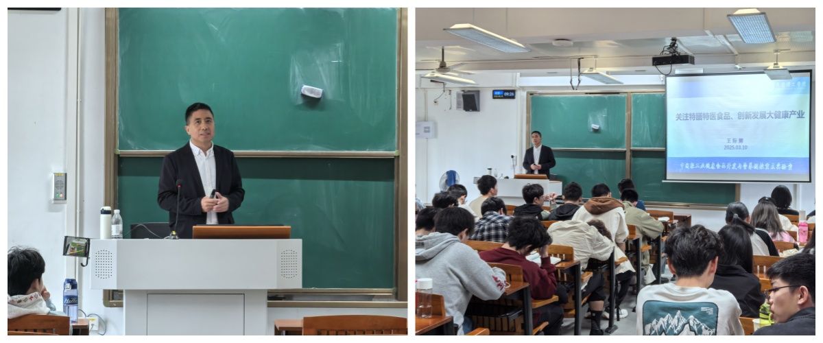 3月10日上午,王际辉以“关注特膳特医食品 创新发展大健康产业”为题,对2024智能制造2班、2024食品科学与工程1班、2024食品营养与健康1班全体同学授课。王际辉从国家大健康战略出发,深入探讨了特膳特医食品在大健康产业中的重要作用。他指出,随着我国人口老龄化加剧,特膳特医食品作为健康产业的重要组成部分,正迎来前所未有的发展机遇,同学们要勇于探索、敢于创新,深刻认识自身肩负的责任与使命,将专业学习、个人发展与国家需求紧密结合,为健康中国建设贡献智慧和力量。