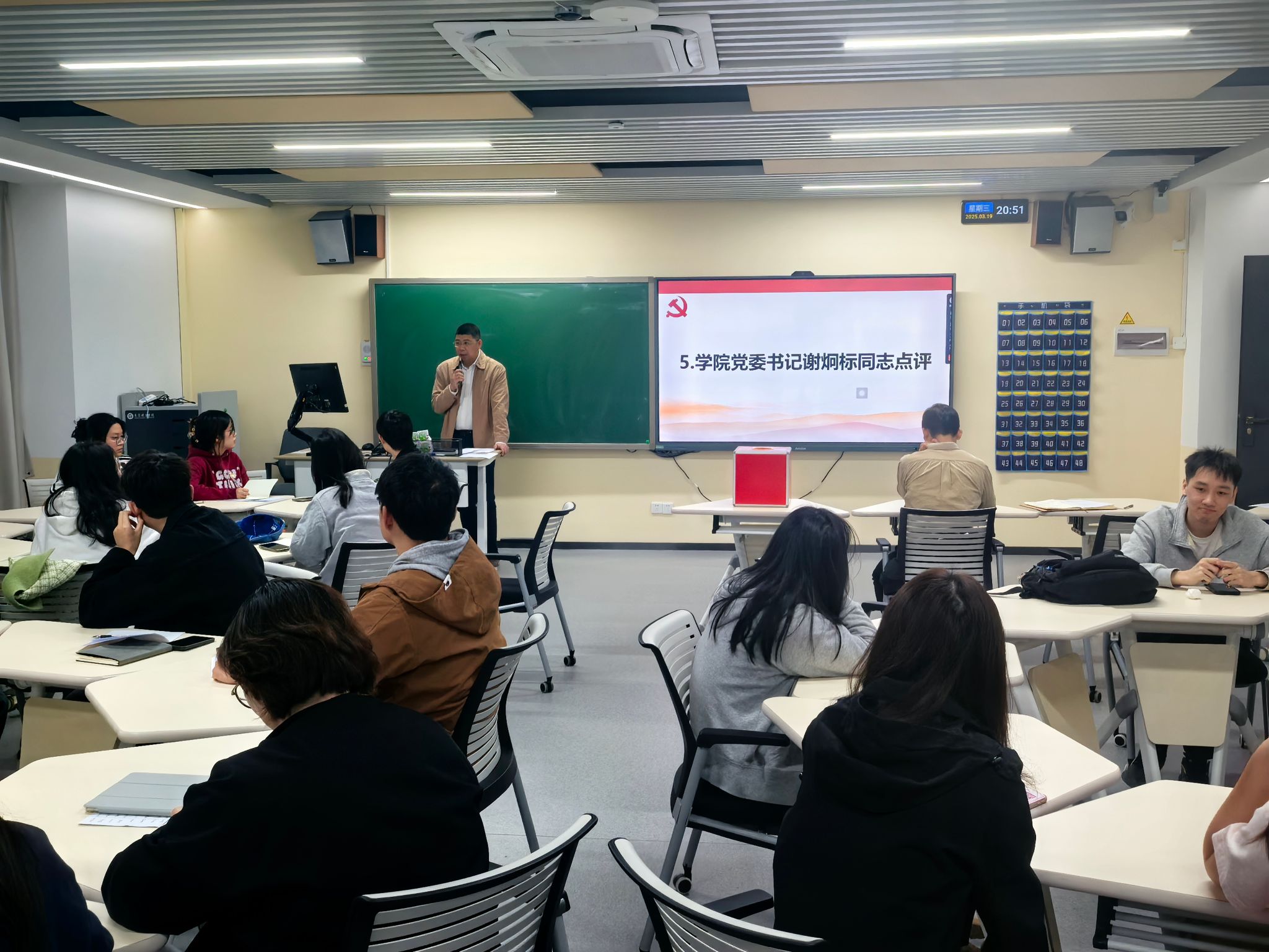 3月19日晚上,sunbet申博,申博官网,sunbet官网学生党支部于6D304课室召开2024年度组织生活会和开展民主评议党员,学院党委书记谢炯标列席指导会议。