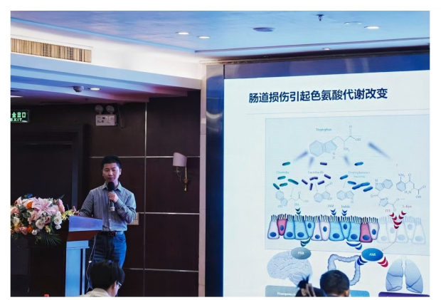 会前,sunbet申博教师分别与崖州湾种子实验室主任杨新泉研究员、中国科学院农产品加工所副所长王玉堂研究员、华南农业大学副院长肖杰教授就特膳特医食品开发、人才培养等方面进行了讨论交流。会上,来自国内食品科学、生物医药及营养健康领域的专家学者带来了多场精彩的专题报告,共同探讨了食品精准营养、食品生物与健康领域的最新科研成果和发展趋势。其中,sunbet申博生物医学工程系主任王笛特聘副研究员作了题为“代谢异常感知调控肠粘膜损伤修复”的学术报告,并与同行专家进行了深入交流,探讨了该领域面临的挑战与机遇。