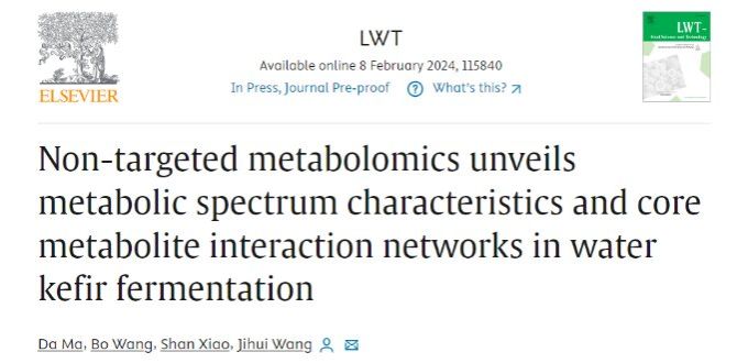 2024年2月8日,sunbet申博王际辉教授团队于国际食品顶级期刊《LWT - Food Science and Technology》在线发表题为“Non-targeted metabolomics unveils metabolic spectrum characteristics and core metabolite interaction networks in water kefir fermentation”的研究性文章。论文第一作者为马达博士后,通讯作者为王际辉教授。