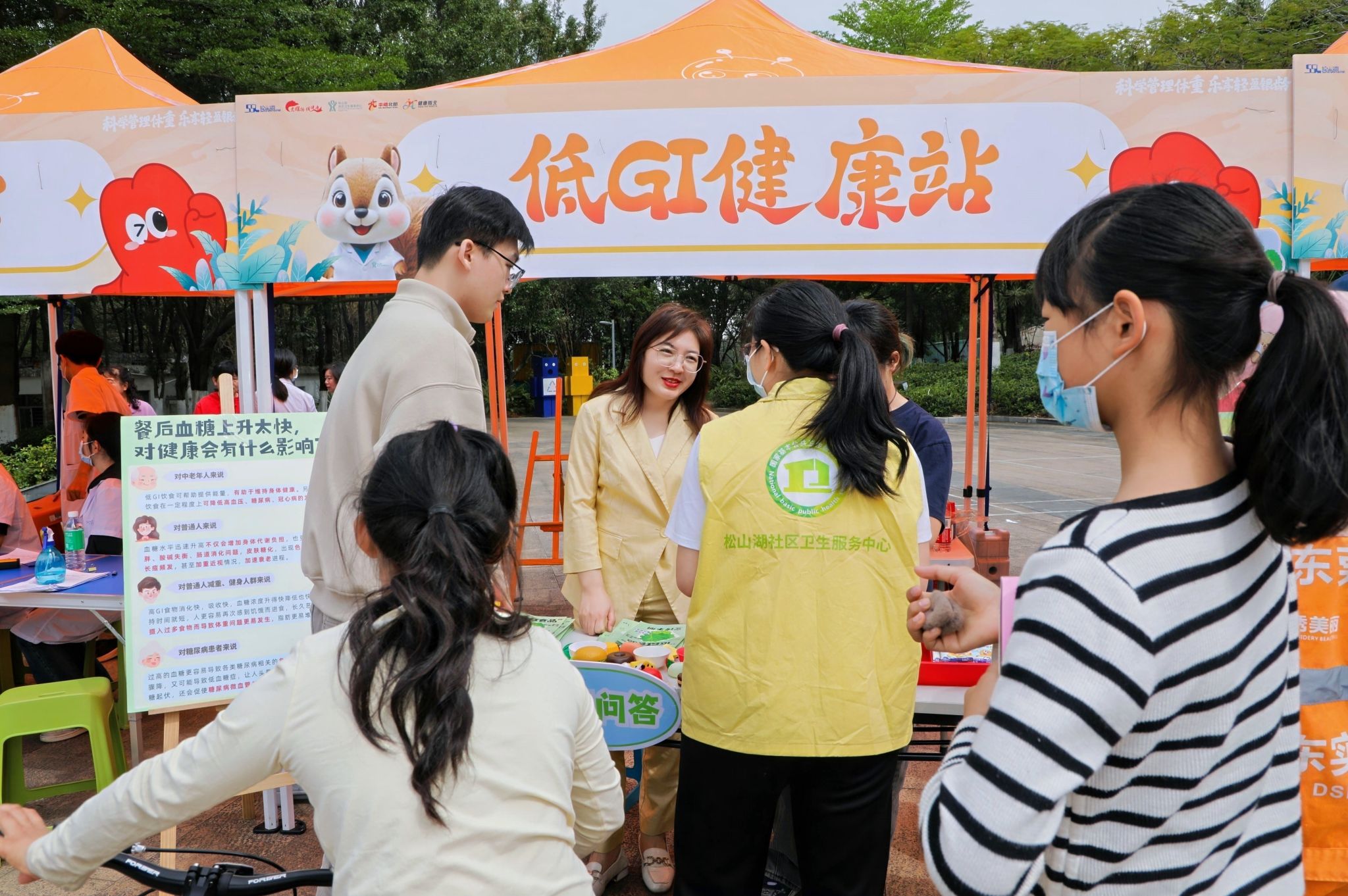 活动现场,sunbet申博,申博官网,sunbet官网控糖先锋团队特别设立了低GI健康知识宣传站。团队成员通过发放宣传手册、指导填写健康问卷等方式,向社区居民系统讲解GI值概念、食物GI值分类以及低GI饮食对血糖控制、体重管理和慢性病预防的重要意义。为增强互动性,团队还设置了有奖问答环节,社区居民通过回答“哪些是低GI食品?”“糖尿病患者不适合吃以下哪个蔬菜?”“有减脂需求的人群适合吃以下哪个零食?”等问题,即可赢取低GI饼干等精美礼品,现场气氛热烈。
