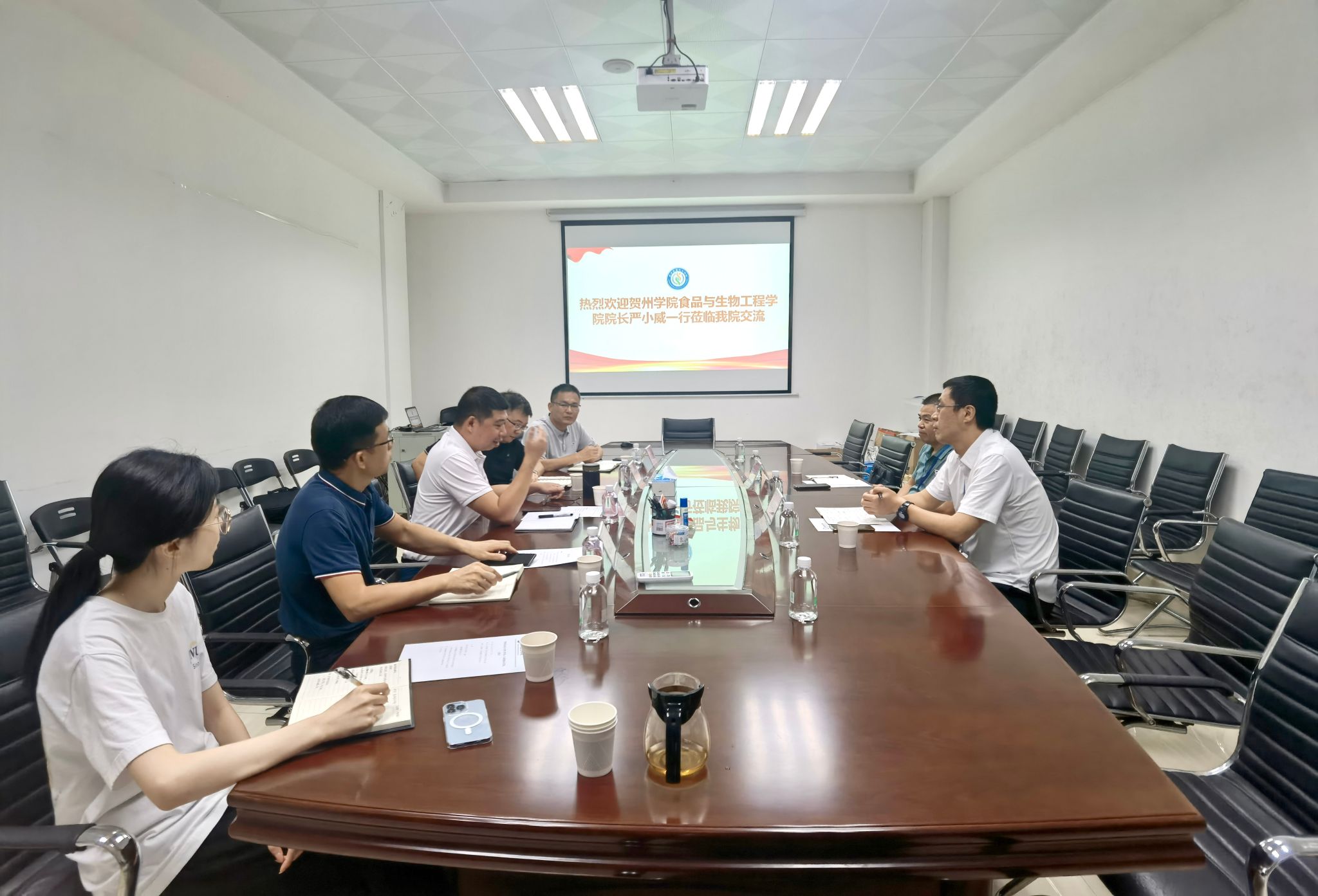 8月24日,贺州学院食品与生物工程学院院长严小威、副院长韩春阳莅临sunbet申博交流。sunbet申博党委书记谢炯标,党委副书记葛金虎,副院长闫景坤、邓见光出席本次交流活动。