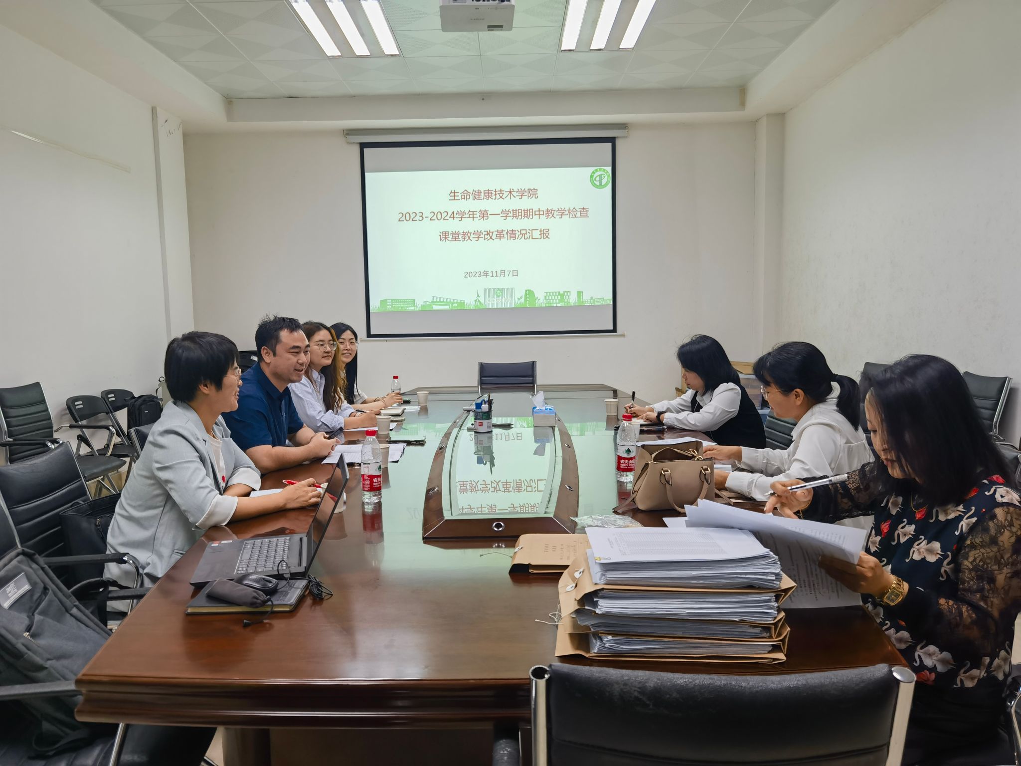 11月7日上午,学校教务部至sunbet申博进行教学情况现场检查,营养与健康系主任刘宇佳、副主任陈璇、生物医学工程系教师沈晓燕、教务员刘紫瑶等参加会议。会上,刘宇佳主任向检查组介绍了sunbet申博本学期的整体教学教研情况,认真听取了检查组给出的建议,并表示后续将针对发现的问题采取相应的整改措施。