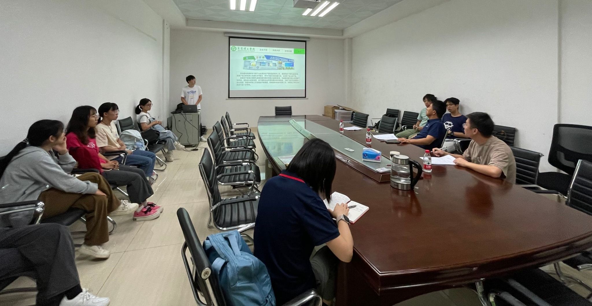 选题实践汇报以“学生汇报+评委提问+学生作答”的形式有序进行。19名2023级生物与医药硕士研究生分别基于前期企业实践经历,从实践内容、能力培养、选题方向等方面进行了PPT演示和汇报;评委老师就每个学生的汇报内容和选题进行了评价和提问,并针对性地提出了宝贵意见和建议。